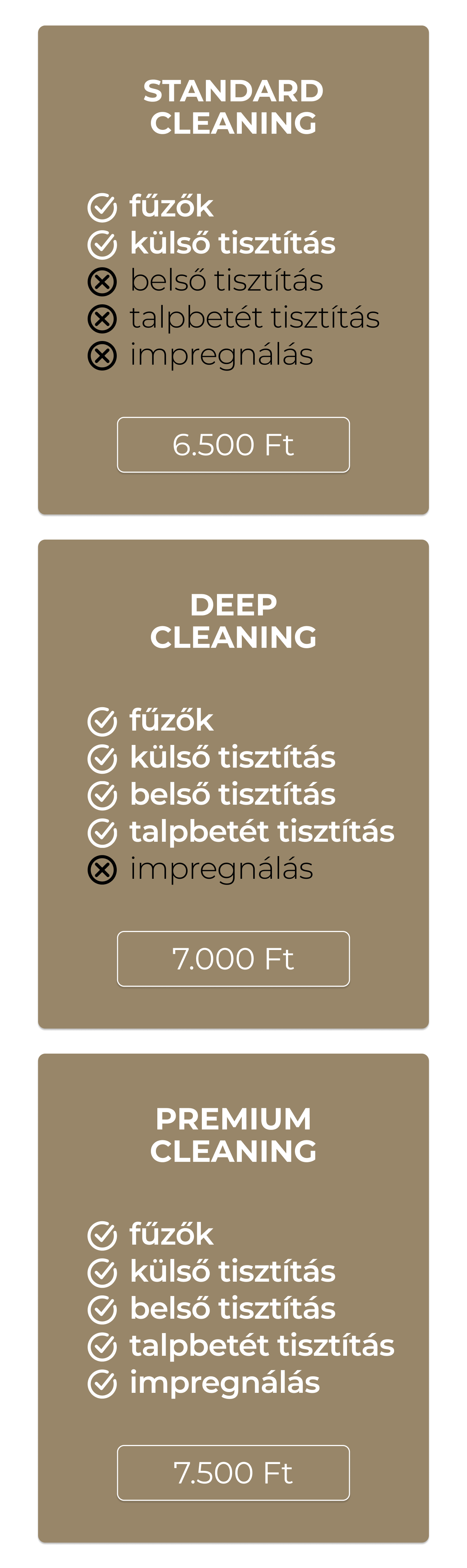 Datorită parteneriatului OnSize X Sneaker Cleaner Budapest, putem curăța pantofii tăi preferați în doar 7 zile și te putem anunța prin e-mail imediat ce suntem gata. În plus, ne ocupăm și de curățarea nu doar a pantofilor sport, ci și a pantofilor din piele întoarsă (de exemplu, UGG, Timberland).